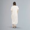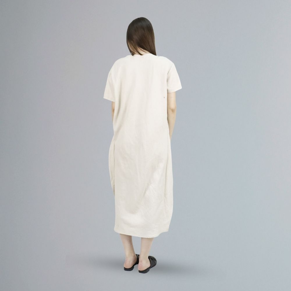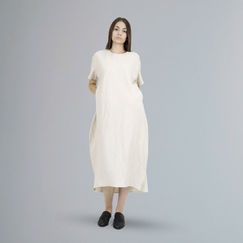 Women’s dress made of beige textile material.