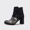 Botine de dama din piele naturala de culoare neagra, cu toc inalt si gros.