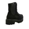 Ghete de dama realizate din piele naturala intoarsa de culoare neagra si blanita neagra.