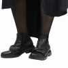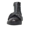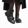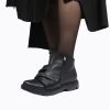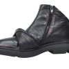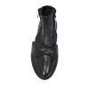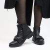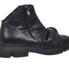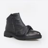 Ghete de dama scurte, din piele naturala de culoare neagra cu inchidere cu fermoar si varf ascutit. Talpa ghetelor este joasa si plata.