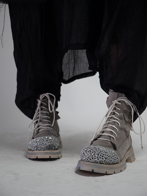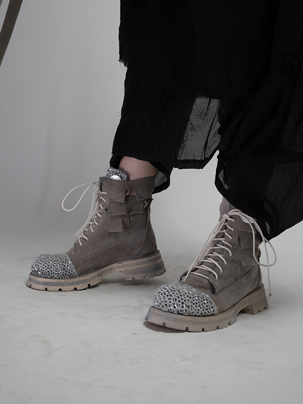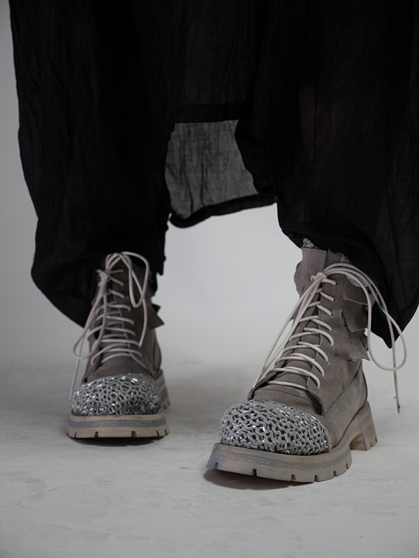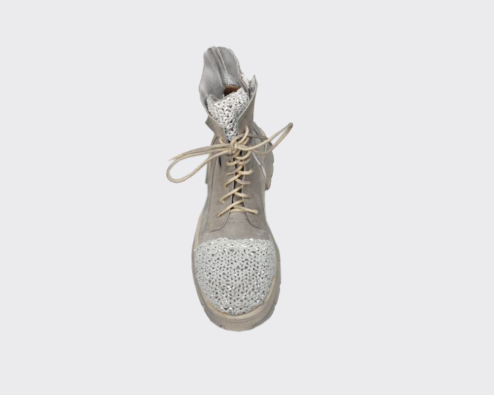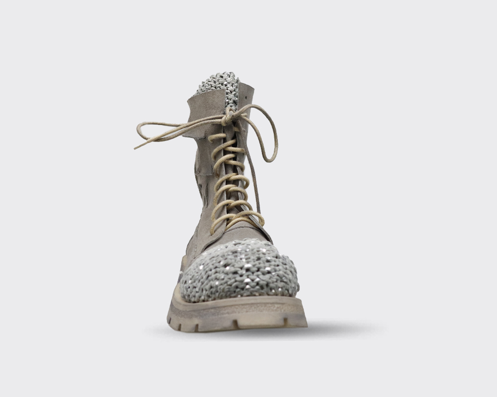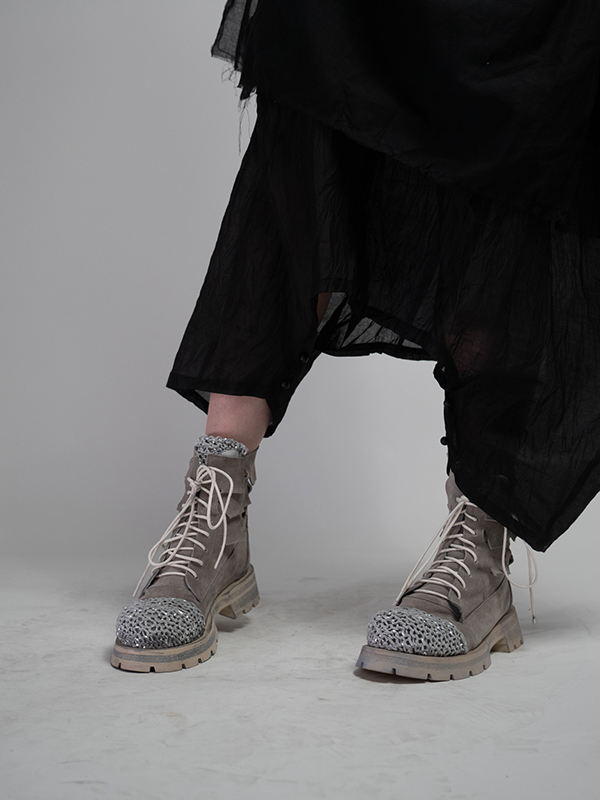 Ghete de dama din piele naturala si varf din piele crosetat.