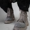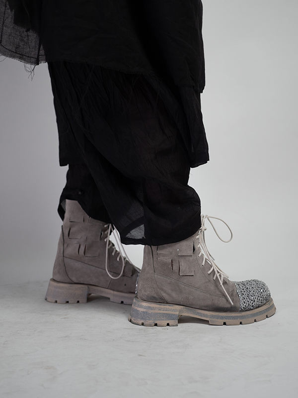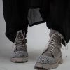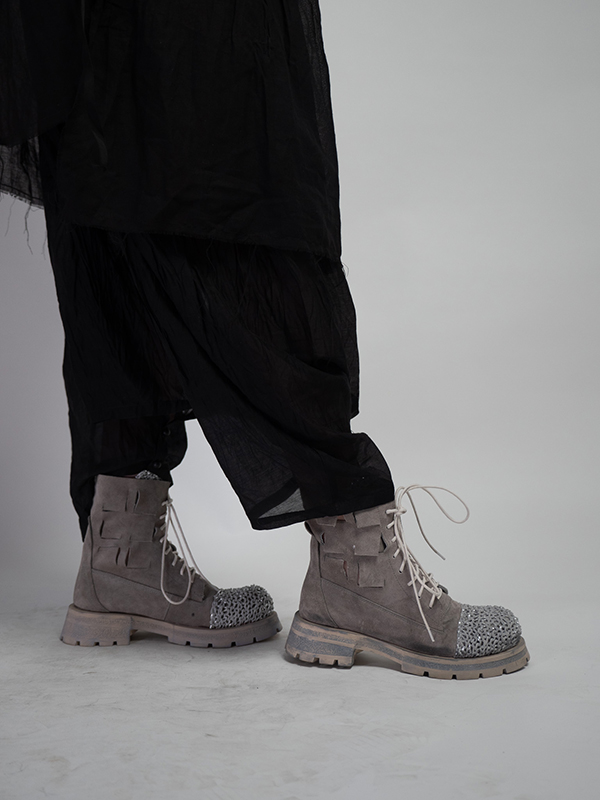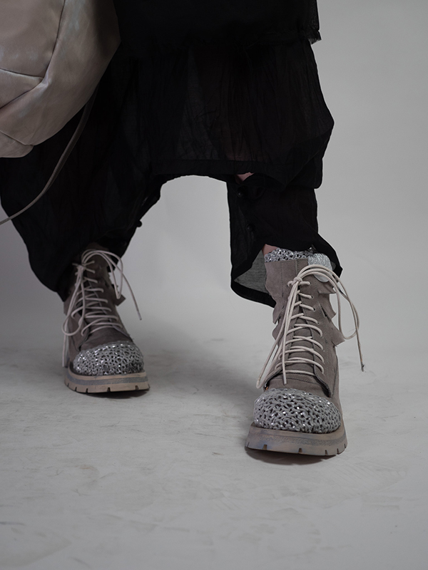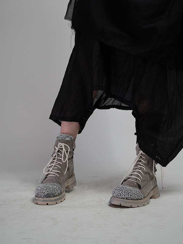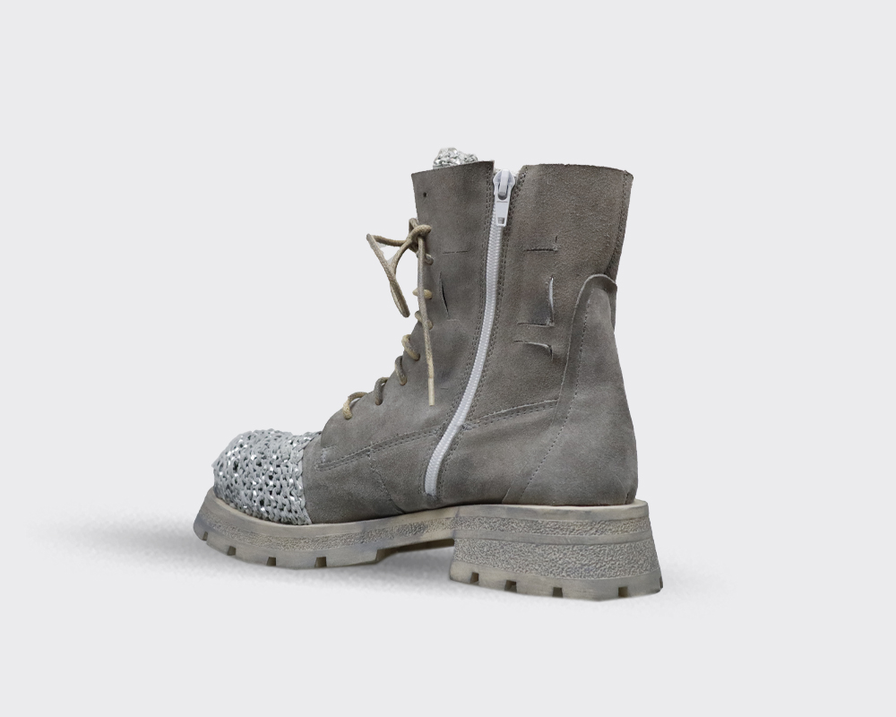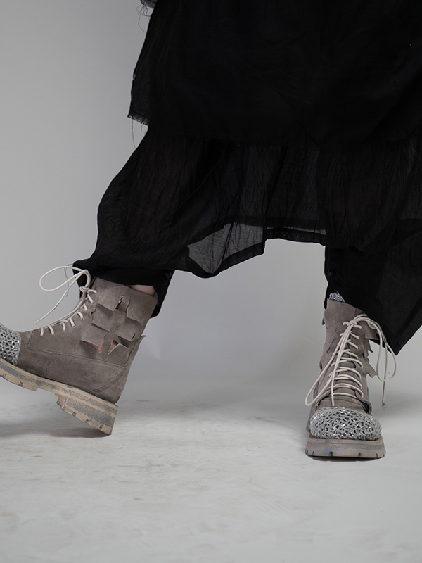 Ghete de dama din piele naturala si varf din piele crosetat.
