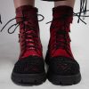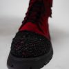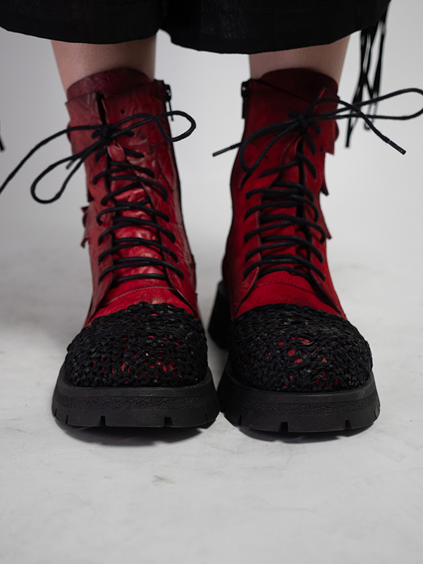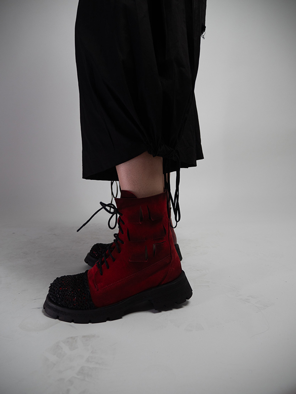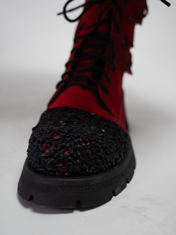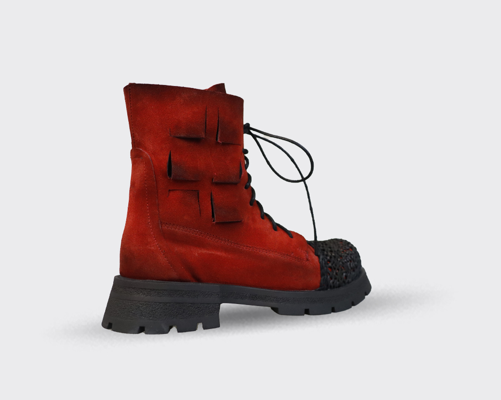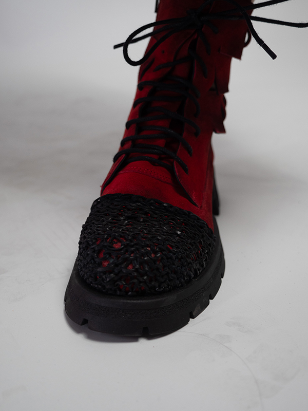 Ghete de dama din velur si varf din piele crosetat.