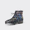 Ghete dama realizate din piele naturala si stofa cu aplicatii din tiul multicolor. Ghetele sunt captusite cu piele naturala.