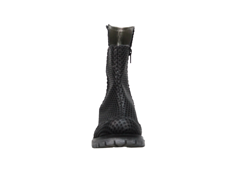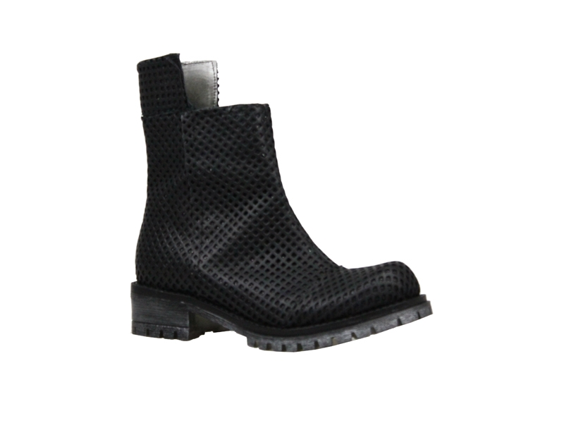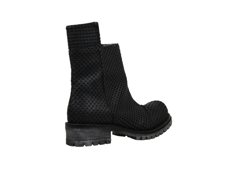 Ghete realizate din piele naturala, perforata, de culoare neagra si din piele decorata cu sclipici si pozitionata dedesubtul stratului superior. Sunt prevazute cu fermoar pe partea laterala interioara, pentru o incaltare mai facila.