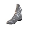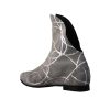 Ghete de dama realizate din piele naturala gri, pe suprafata carora se gasesc linii aurii.