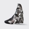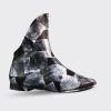 Ghete de dama realizate din piele naturala neagra, pe suprafata carora cu ajutorul unui burete s-a aplicat vopsea alba.