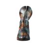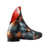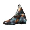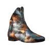 Ghete de dama realizate din piele naturala neagra, pe suprafata carora cu ajutorul unui burete s-a aplicat vopsea albastra si bronz.
