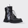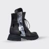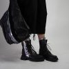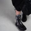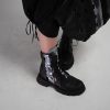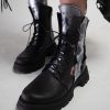 Ghete de dama din piele naturala decupate, cu fermoar si siret.