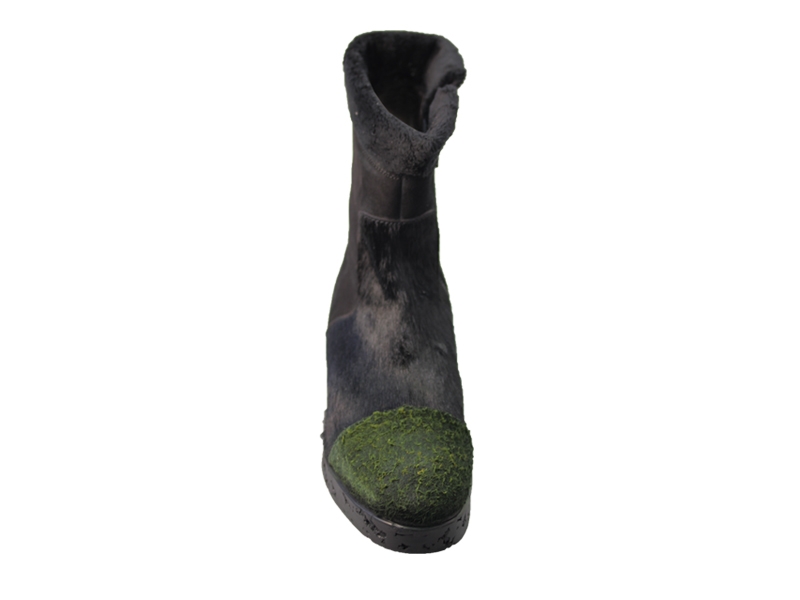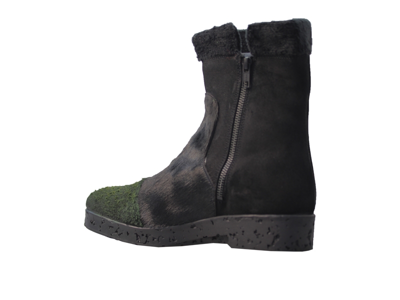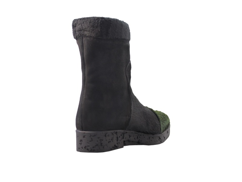 Ghete realizate din piele naturala de culoare neagra, piele intoarsa si texturata de culoare verde si blanita de culoare neagra.
