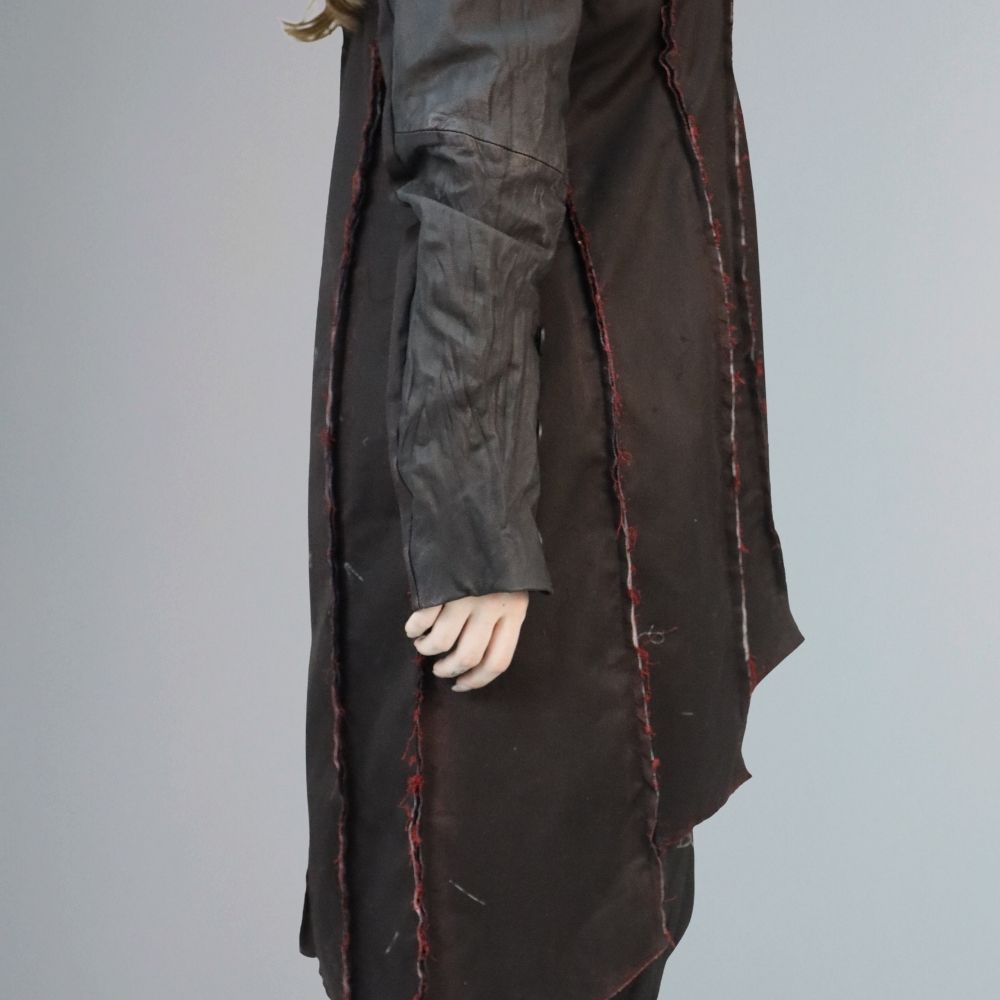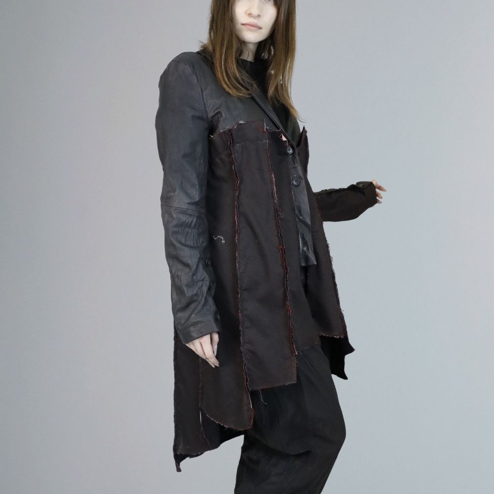 Jacheta de dama din piele naturala si material textil.