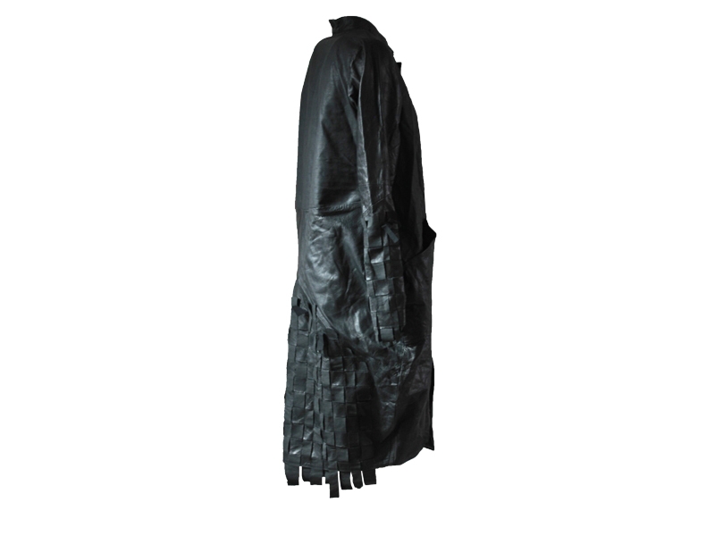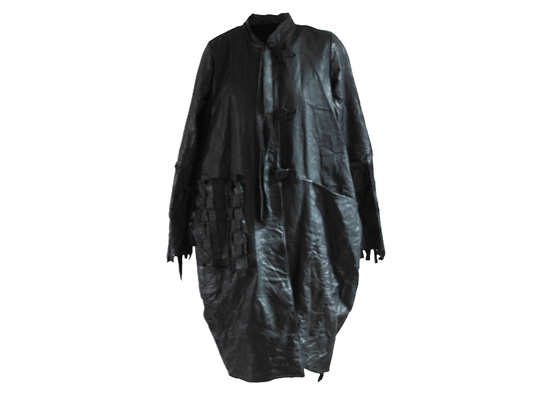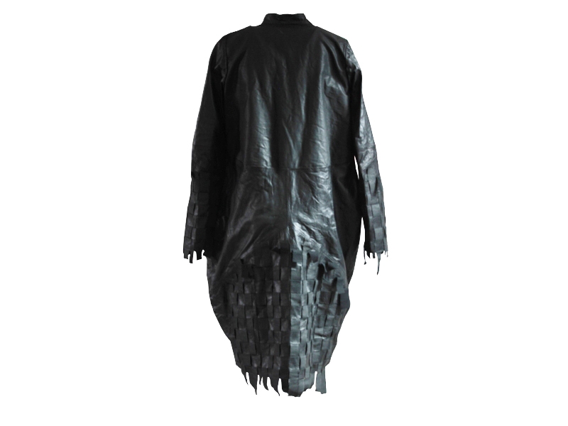 Jacheta de dama realizata din piele naturala de culoare neagra si material textil.