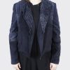 Jacheta de dama din piele naturala intoarsa si material textil.
