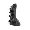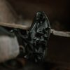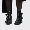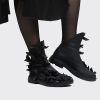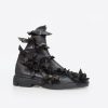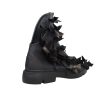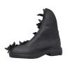 Ghete de dama scurte confectionate din piele naturala captusite cu piele naturala de culoare neagra si decoratiuni din panglica de decor sintetica. Ghetele sunt finisate manual cu vopsea aurie, au fermoar pe mijloc, varf ascutit si talpa joasa si plata.