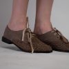 Pantofi de dama din piele naturala și vârf din piele crosetat.
