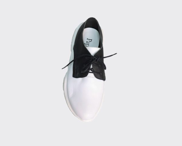 Pantofi de dama realizati din piele naturala alba si neagra, captusiti cu piele naturala. Inaltimea talpii este de 3,5 cm.