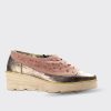 Pantofi dama realizati din piele naturala roz si antracit, captusiti cu piele naturala. Talpa inalta de 5 cm.