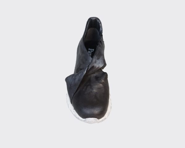 Pantofi de dama din piele naturala de culoare neagra. Toate produsele sunt realizate manual in atelierul nostru din Iasi. Pentru fiecare model in parte exista serii limitate, iar pielea naturala este materia prima de baza. Confortul, designul special si calitatea papuceilor nostri sunt rezultatul pasiunii, talentului si experientei in domeniu a designerului Angela Vasiliu.