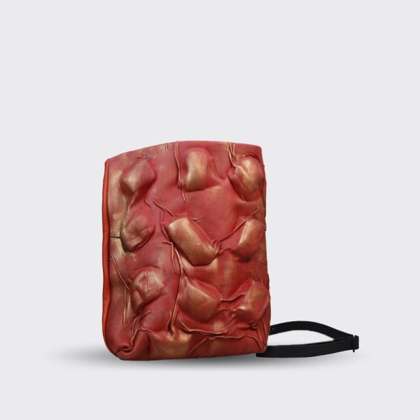 Rucsac de dama din piele naturala de culoare rosie, finsiat manual cu vopsea aurie. Rucsacul are doua barete din piele ajustabile si detasabile, dimensiunea rucsacului este de 42x34cm.