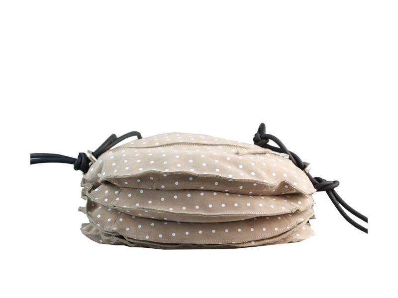 Poseta are un singur maner, realizat din cauciuc negru si poate fi purtata pe umar.