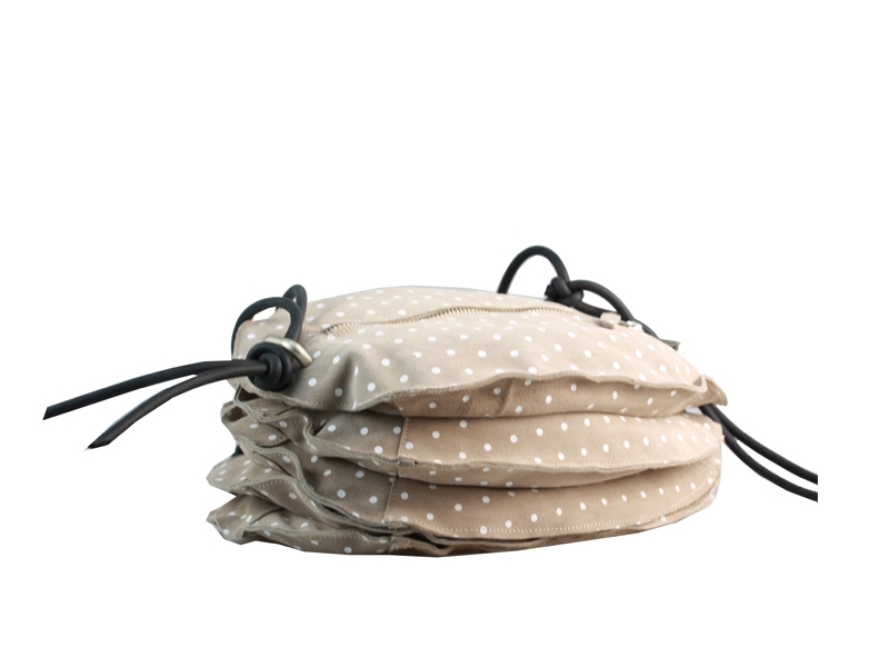 Poseta de dama realizata din piele naturala de culoare bej, captusita cu material textil.