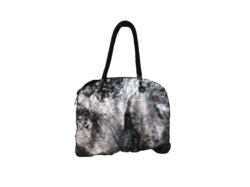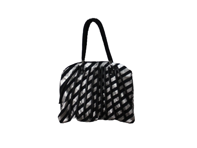 Poseta este realizata din piele naturala de culoare neagra si argintie. Poseta este captusita cu material textil.