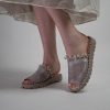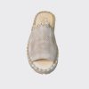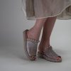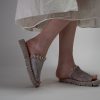 Saboti de dama din piele naturala cu decor din textil împletit. Toate produsele sunt realizate manual in atelierul nostru din Iasi. Pentru fiecare model in parte exista serii limitate, iar pielea naturala este materia prima de baza. Confortul, designul special si calitatea papuceilor nostri sunt rezultatul pasiunii, talentului si experientei in domeniu a designerului Angela Vasiliu.