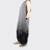 Salopeta de dama lunga din material textil gri, cu finisaje realizate manual si fermoar la spate.